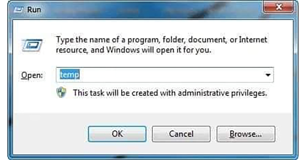 1. Type temp Select All (Ctrl + A) (Shift + Delete) to delete.